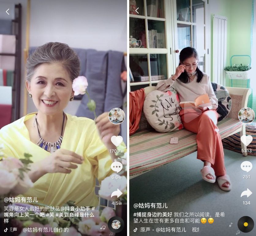 养老范儿是他们孵化的项目之一,段明杰透露,姑妈有范儿的抖音粉丝更多是三四线偏中年的人群,一种人群是反射到自身,觉得自己老了也会这样,一种是30多岁的儿媳或女儿,会参考网红来照顾自己的婆婆和母亲,给她们买东西。