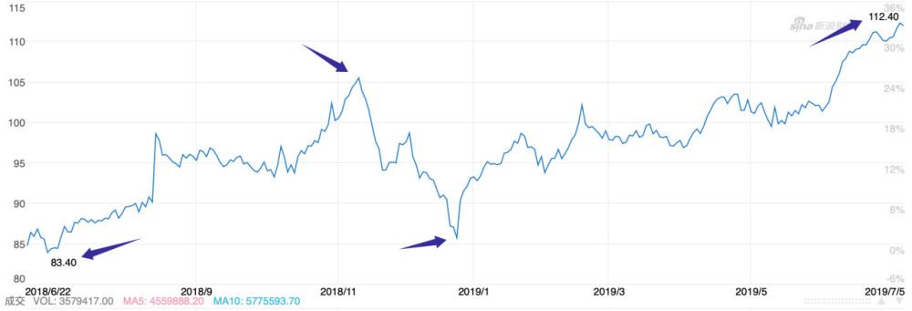 受在线杂货业务成功扩张的提振,沃尔玛过去两年的股价不断提升,尤其是从2018年6月跌至83.40美元的低点后,就一直呈现震荡上扬的态势,直到目前达到了112.40美元的高点。