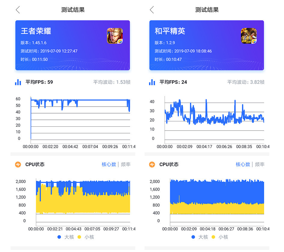 而在具体游戏表现中,应付王者荣耀的最高画质不成问题,无论是推塔还是打野,表现的比较稳定,平均帧率为59FPS,波动为1.53帧率,只有在团战发动技能时帧率才会锐减。