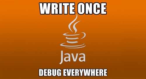 但事与愿违,Java虽然在各种设备上开花结果,却出现了各种不同的虚拟机实现,承诺的“一次编写,到处运行”,最后成了一纸空谈。程序员不得不对每种运行环境单独适配,改bug改到秃头。那个口号也成了著名的笑话:write once,debug everywhere。