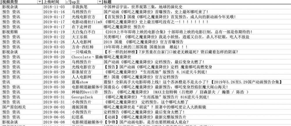搜索“哪吒之魔童降世”可以看到视频信息,今天我就来爬一爬,看看B站UP主们是如何对这部优秀的作品进行再创新的。
