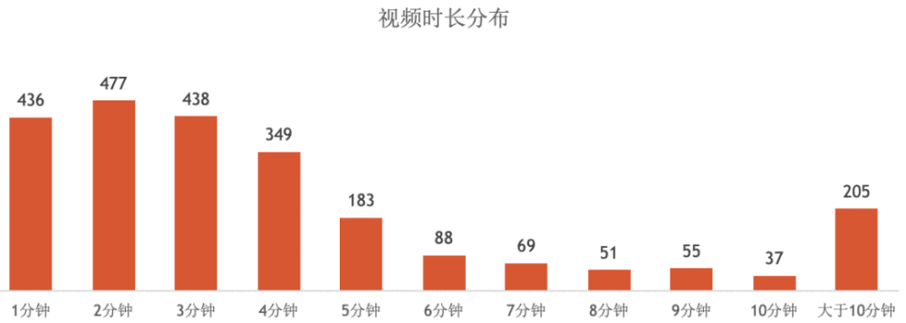 超过一半的视频时长都在3分钟之内,但是也有些视频长达2个小时多,长视频大部分都是一些教学类视频(绘画、建模等)。大家都说喜欢在B站上学习,免费还无广告,诚不欺我。