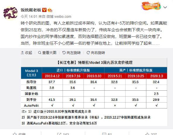 今年以来,特斯拉进行了多次降价,引用一下饭桶戴老板的微博: