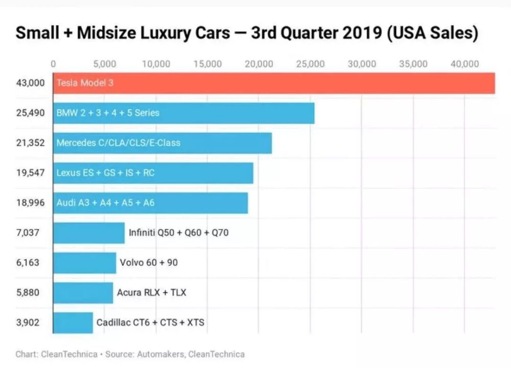 至于其他在美国市场的燃油车豪华品牌,全家一起上,都不足以让社长来列这个销量公式。