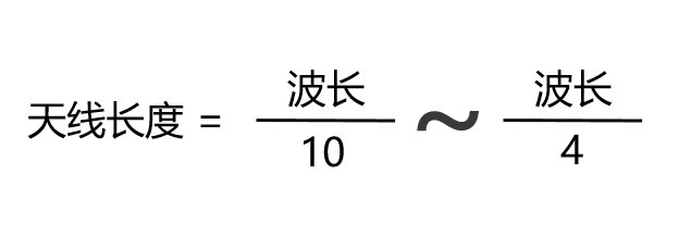 根据天线特性,天线长度应与波长成正比,大约在 1/10~1/4 之间。