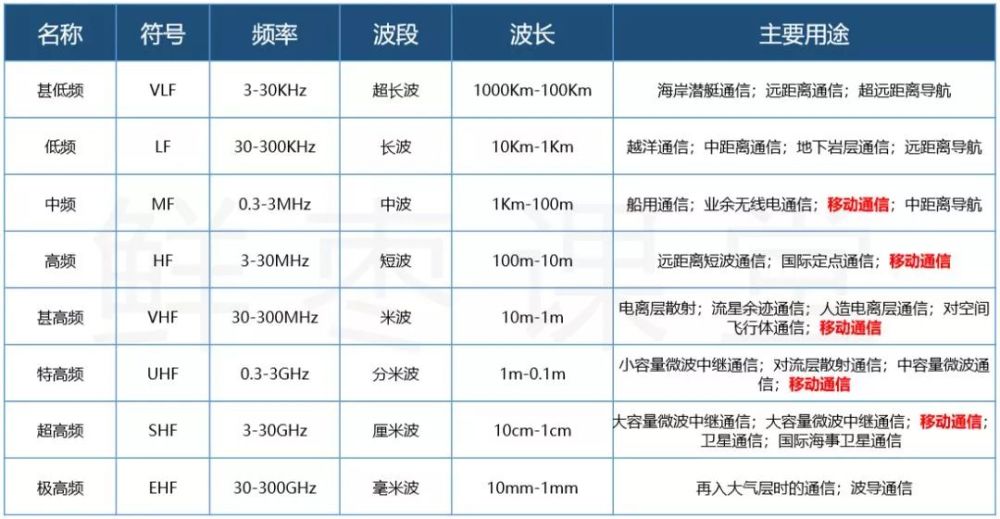 请大家注意上面图中的红色字体。一直以来,我们主要是用中频~超高频进行手机通信的。