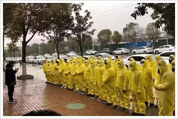 滴滴首批100位的保障车队司机都身穿黄色的防护服、戴着口罩。他们将免费接送武汉义务工作者,并且春节无休,随时待命。