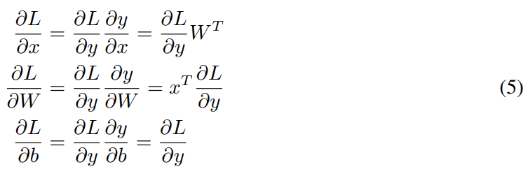 该线性算子的反向传播可表达为: